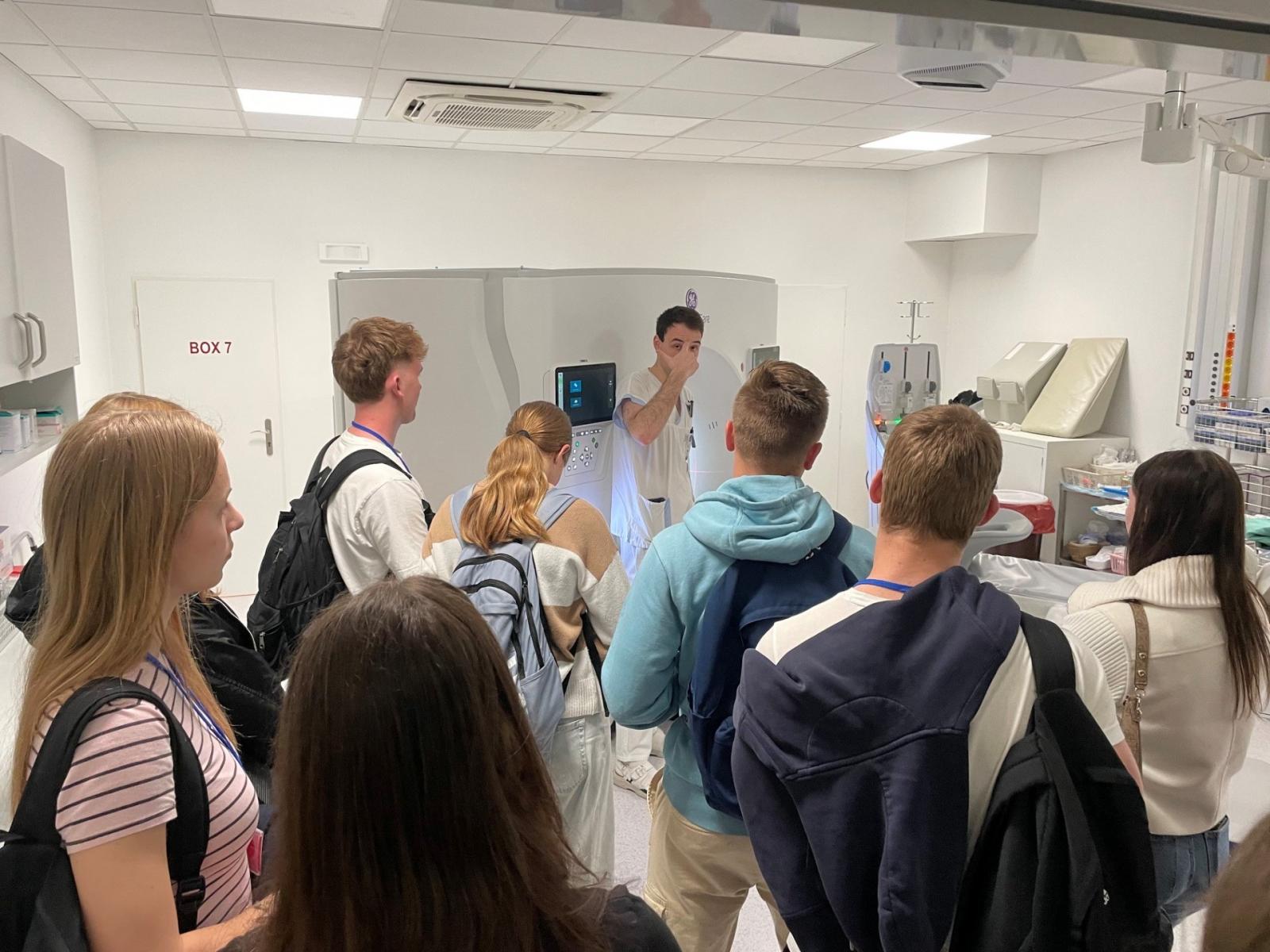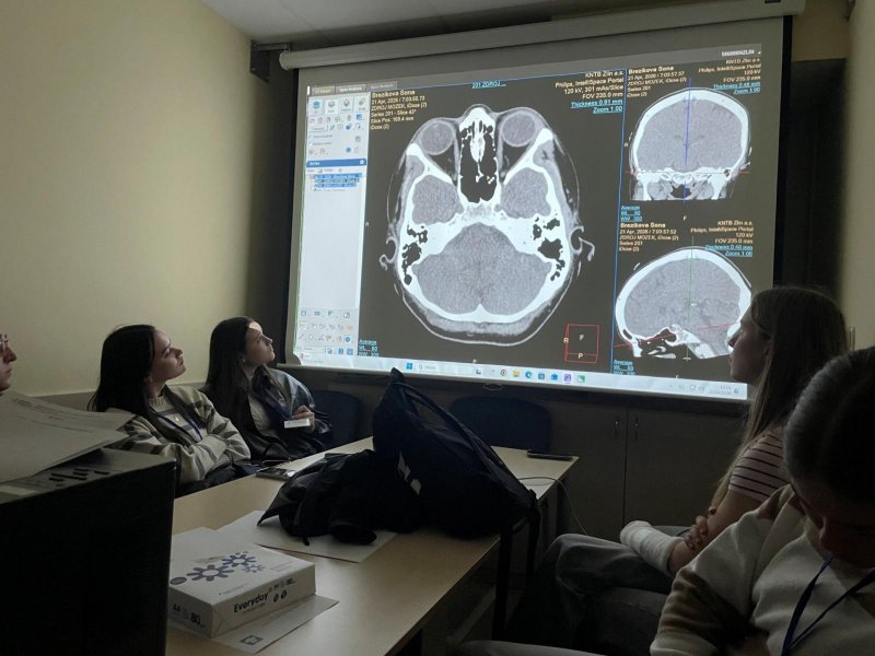 Následně byli studenti seznámeni také s moderními diagnostickými metodami, mezi které patří rentgenové vyšetření (RTG), výpočetní tomografie (CT) a magnetická rezonance (MRI). Odborníci studentům vysvětlili základní principy těchto metod, jejich využití v klinické praxi a význam pro správné stanovení diagnózy i další postup léčby.