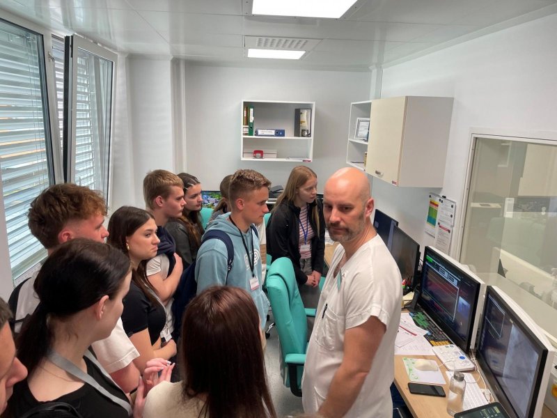 V rámci exkurze studenti navštívili také jednotku intenzivní péče (JIP), urgentní příjem a oddělení fyzioterapie. Dozvěděli se, jak probíhá péče o pacienty v kritickém stavu, jak funguje urgentní medicína v praxi a jakou roli hraje rehabilitace v procesu léčby a návratu pacientů k běžnému životu. Praktické ukázky a komentář zdravotnického personálu přispěly k lepšímu pochopení provázanosti jednotlivých oddělení.
